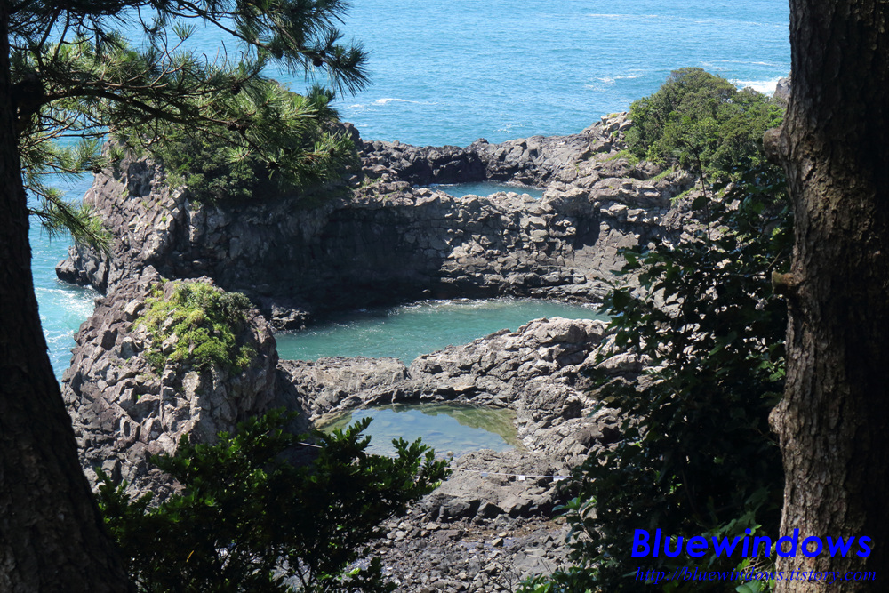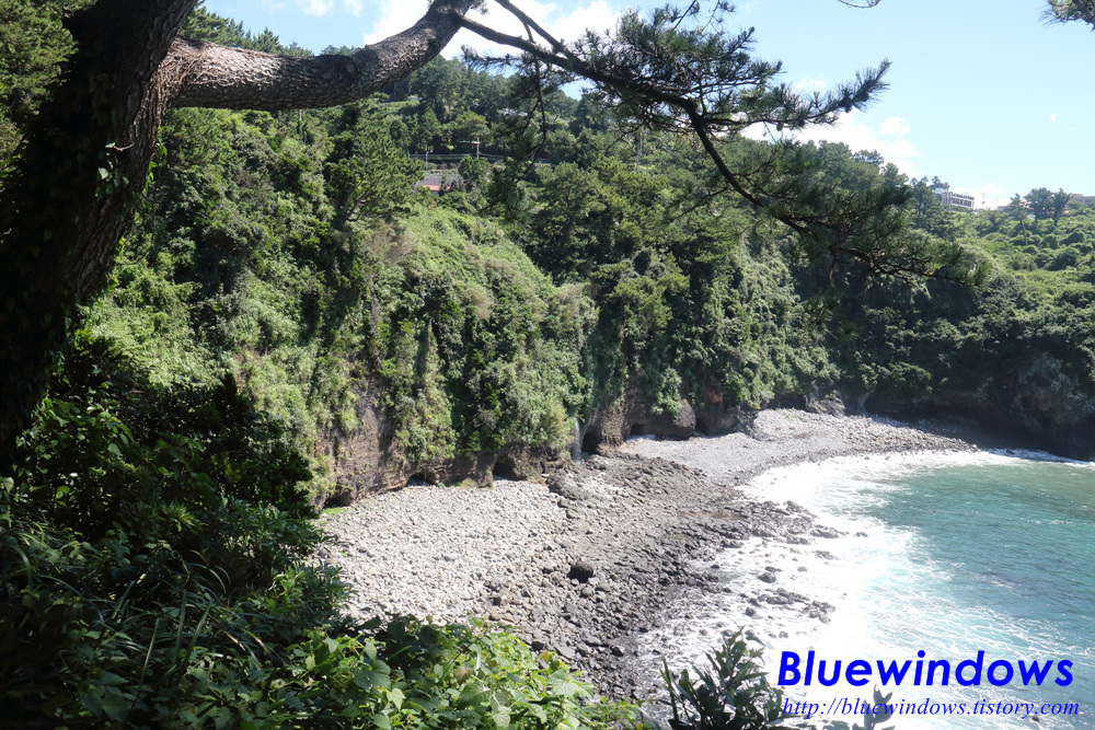 선녀탕에서 동쪽으로 산책로를 따라가면 해안 동굴을 볼 수 있는 해변이 나오는데