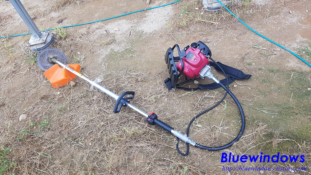 제초작업은 처음에는 원형 날로 하고 위험한 부분만 플라스틱 줄로 된 날로 교체해서 하는 게 효율적이네요.