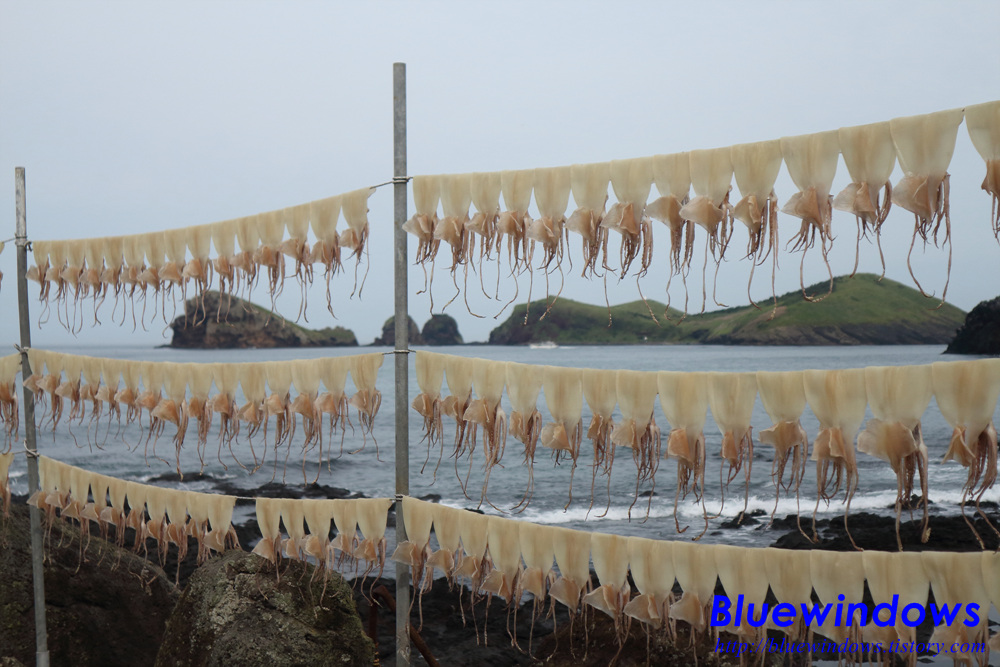 차귀도 선착장에 도착하니 오징어가 많이 잡히는지 오징어를 한참 말리고 있습니다.