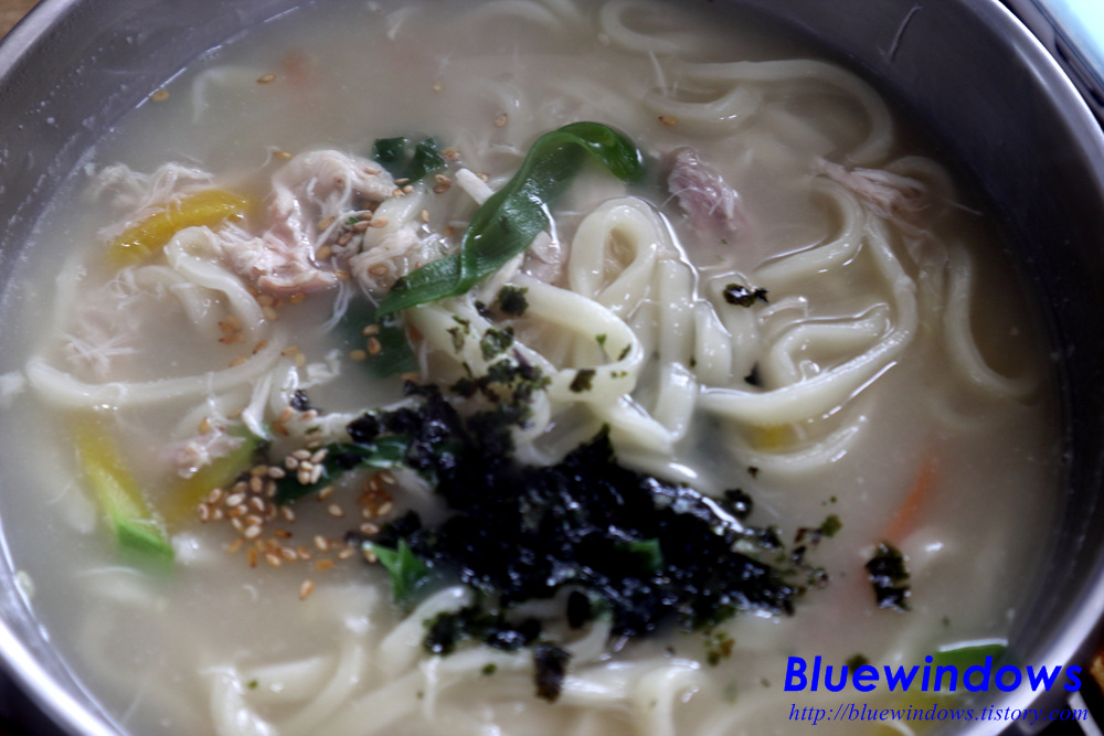 닭 칼국수는 닭 육수 맛이 잘 느껴지는 칼국수입니다.
