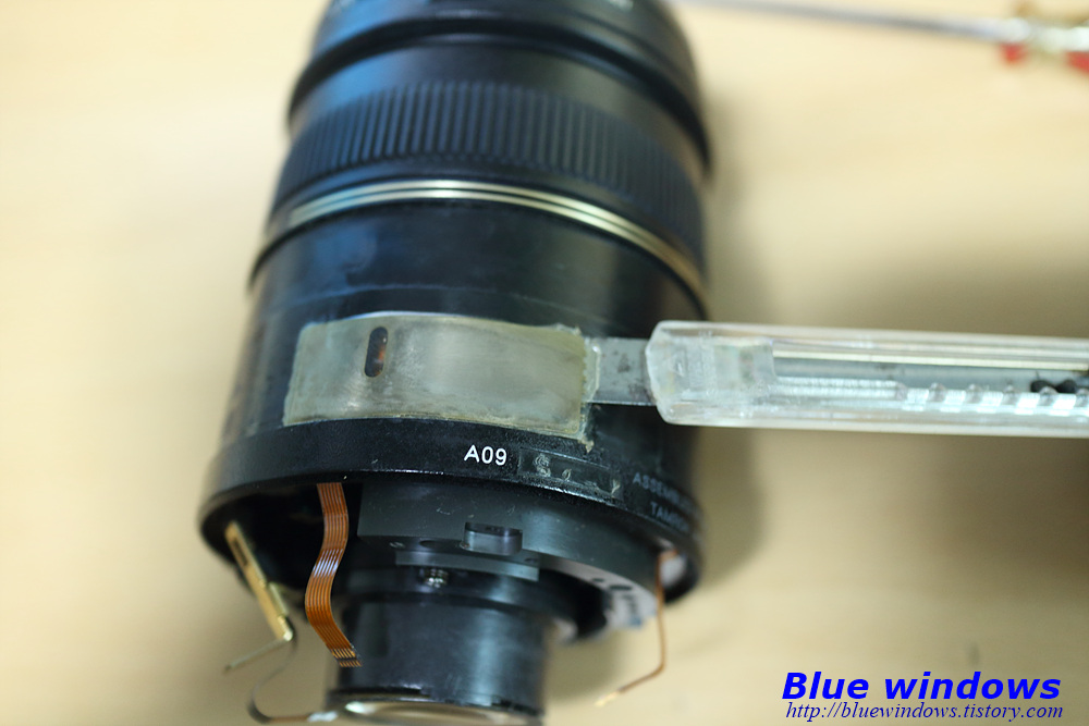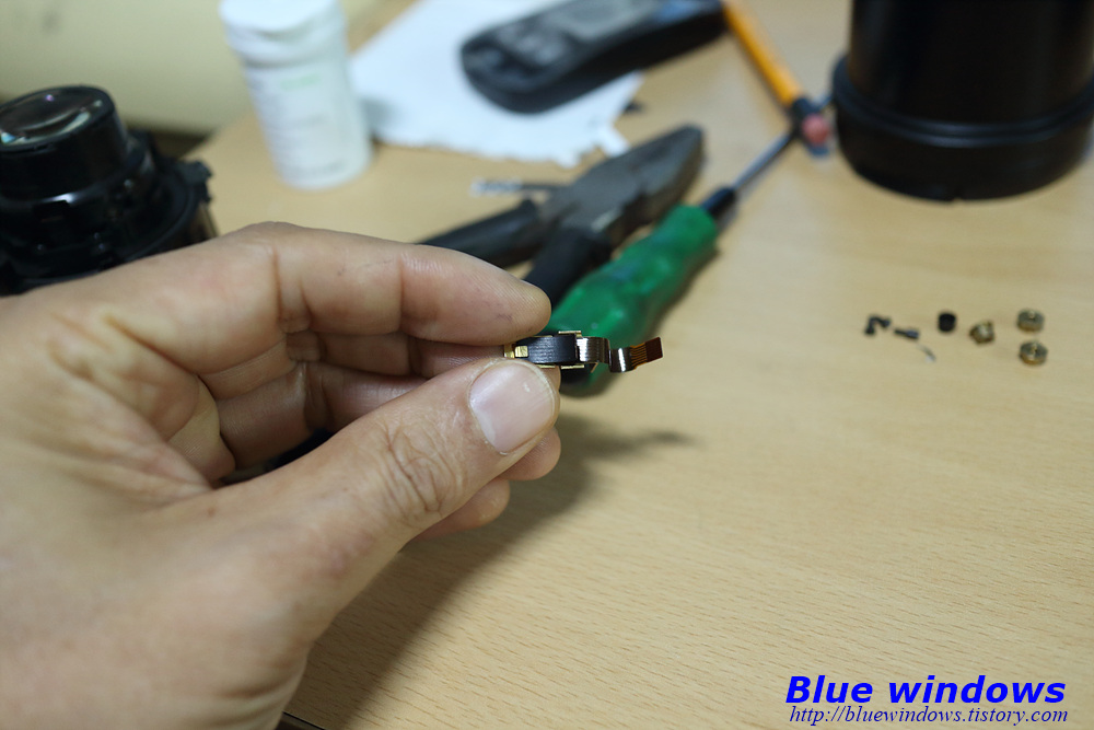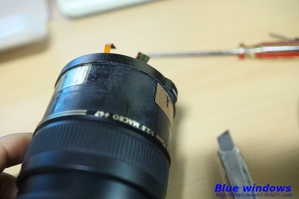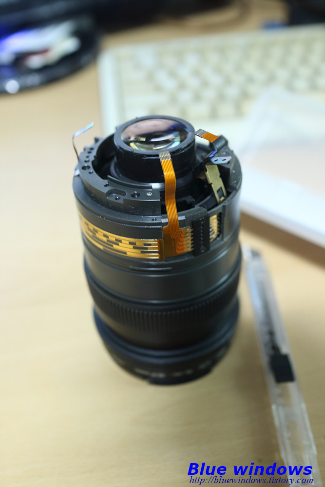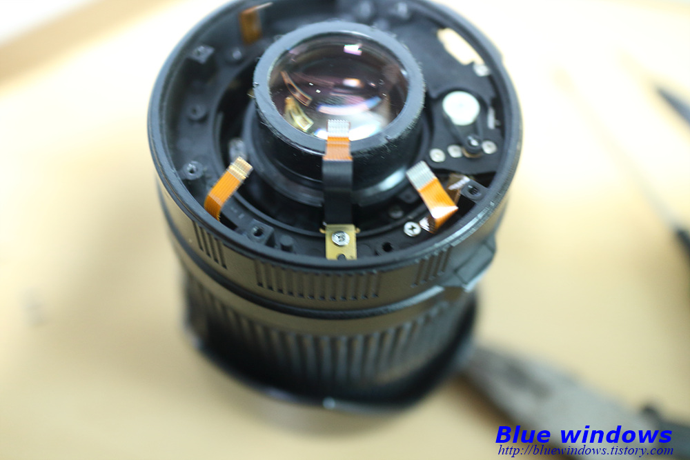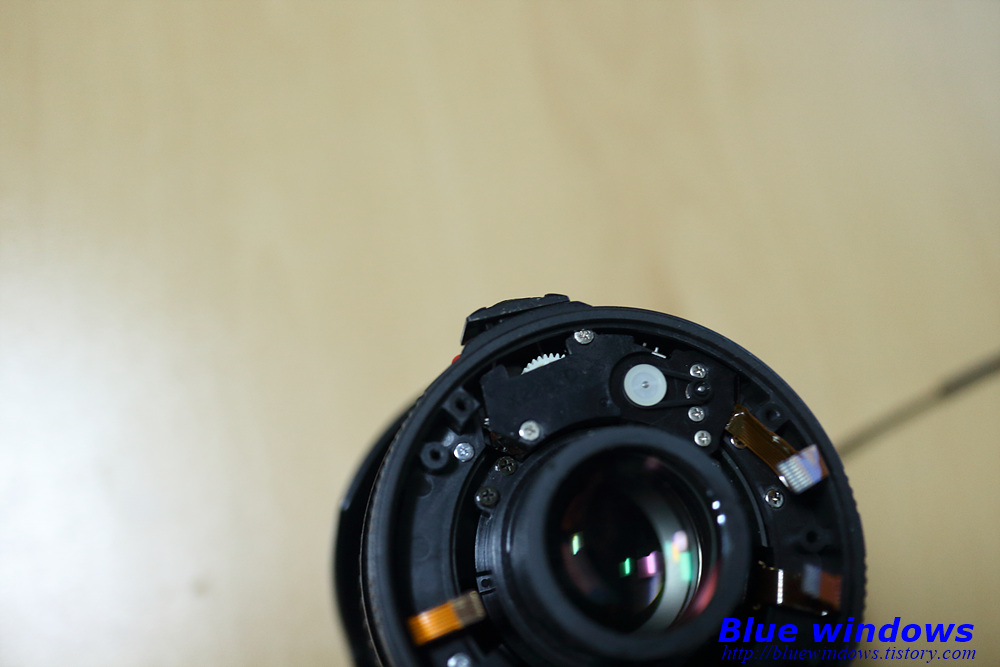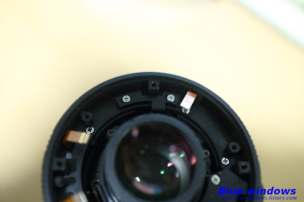 사진 좌측을 자세히 보시면 금속판에서 경통 안쪽으로 들어가는 플렉스 케이블이 보이는데