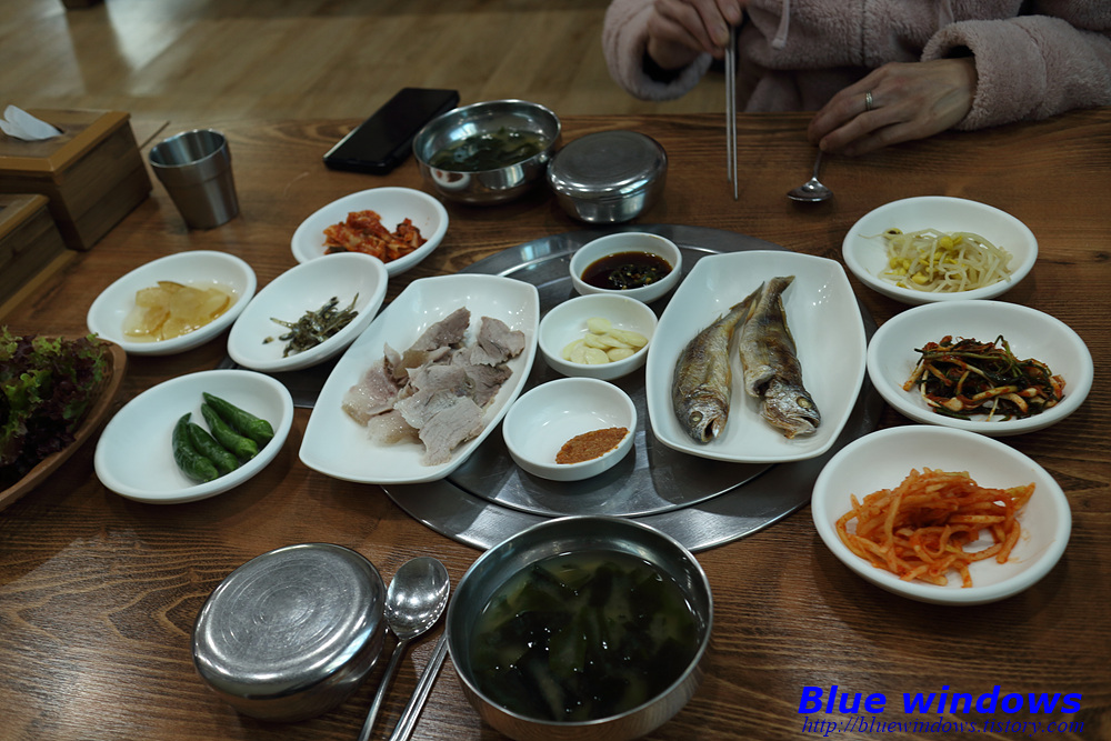 돔배고기와 생선 그리고 밑반찬이 나오는데 맛은 깔끔합니다.