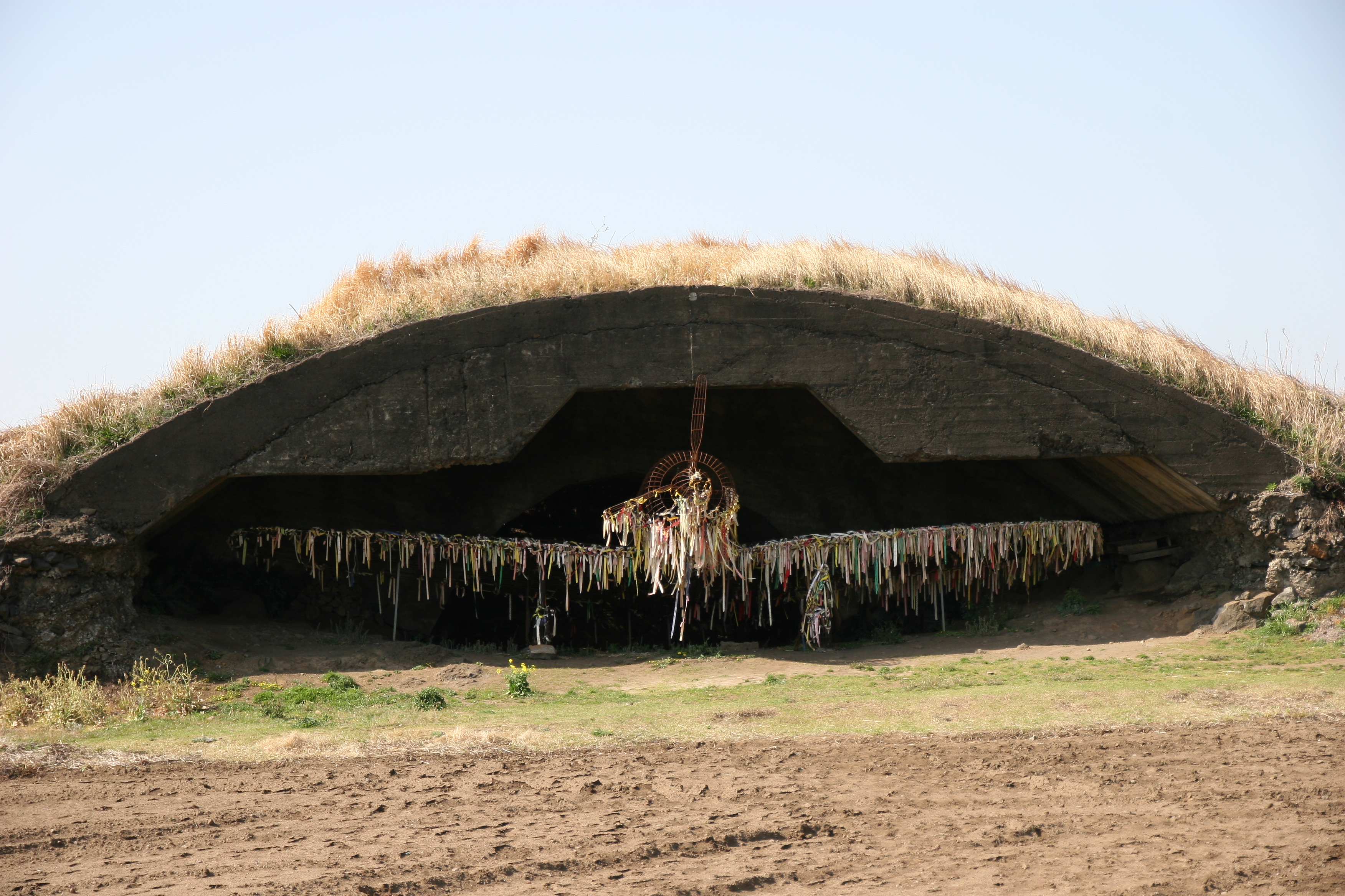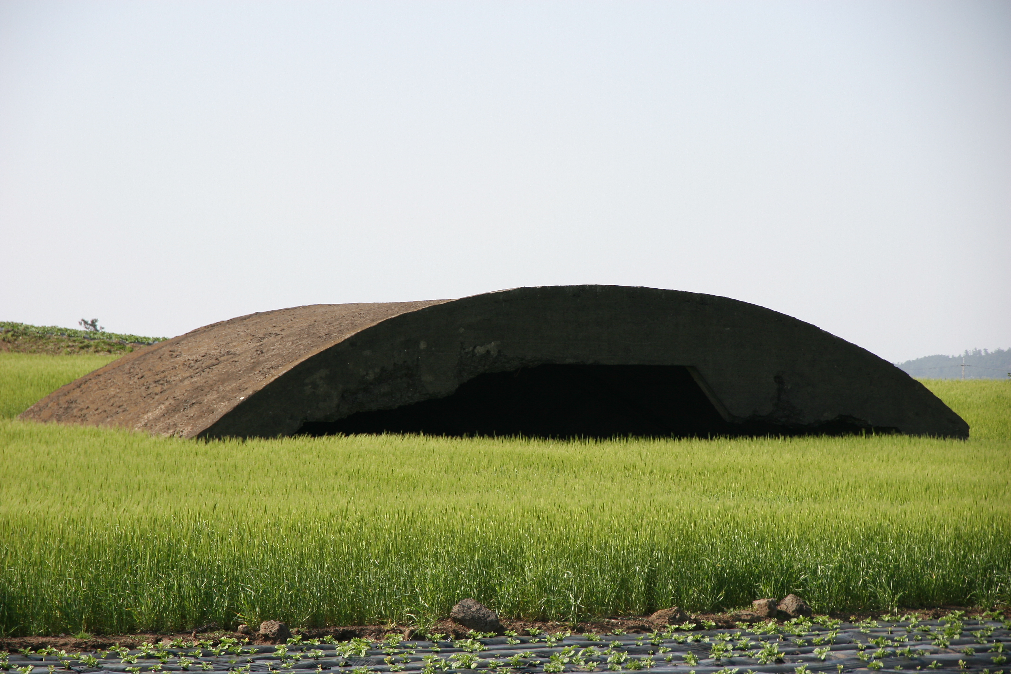 일제시대 때 일본군이 비행기를 보관하기 위해지었던 격납고라고 합니다.