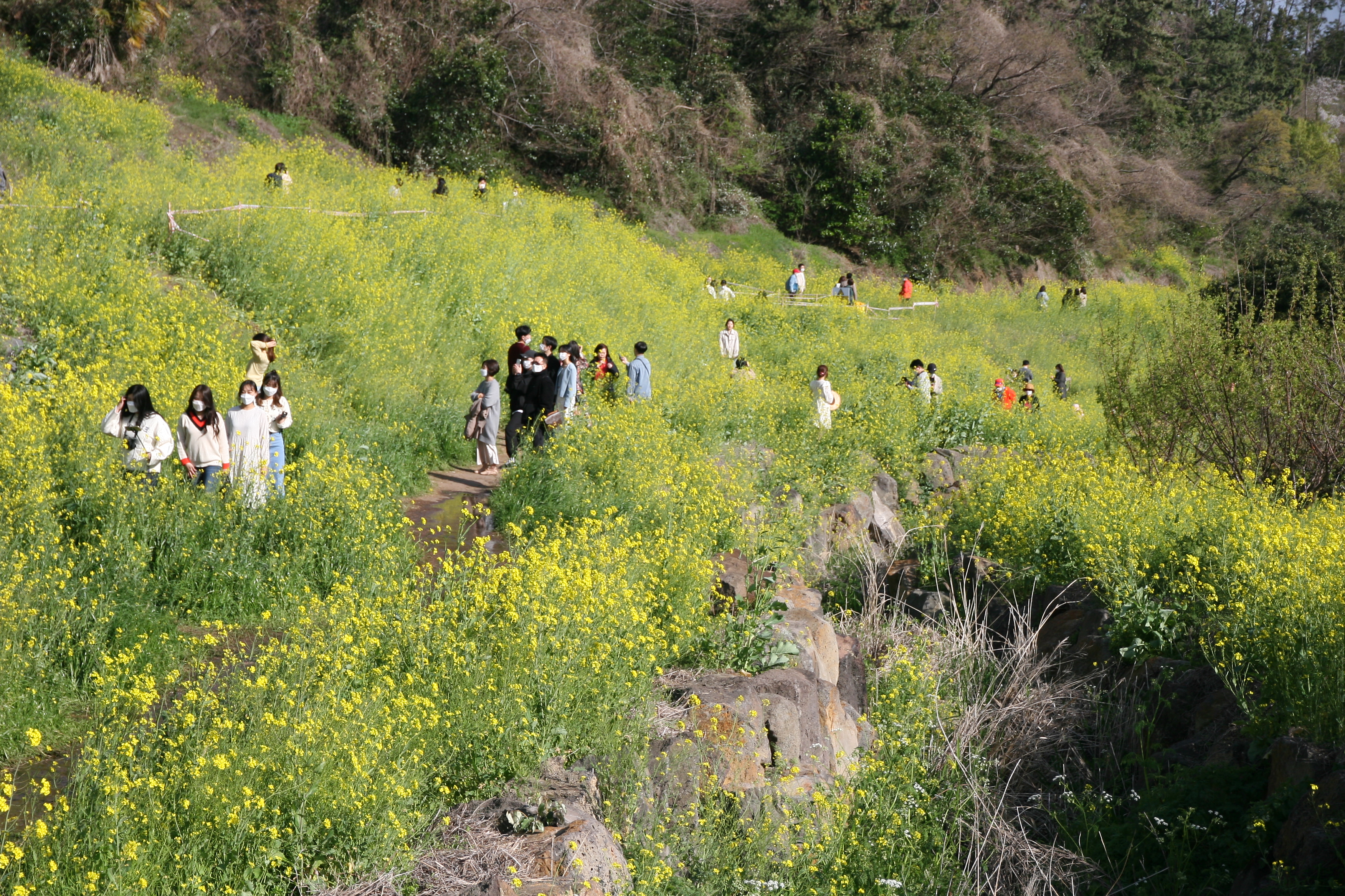 계곡 전체가 유채꽃밭입니다.