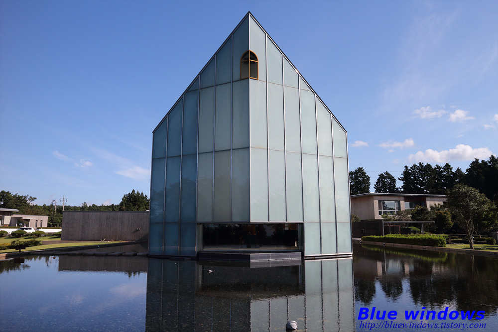 교회 전체를 연못을 만들어 감싸고 있어 교회가 배 처럼 물위에 떠있는 분위기를 연출합니다.