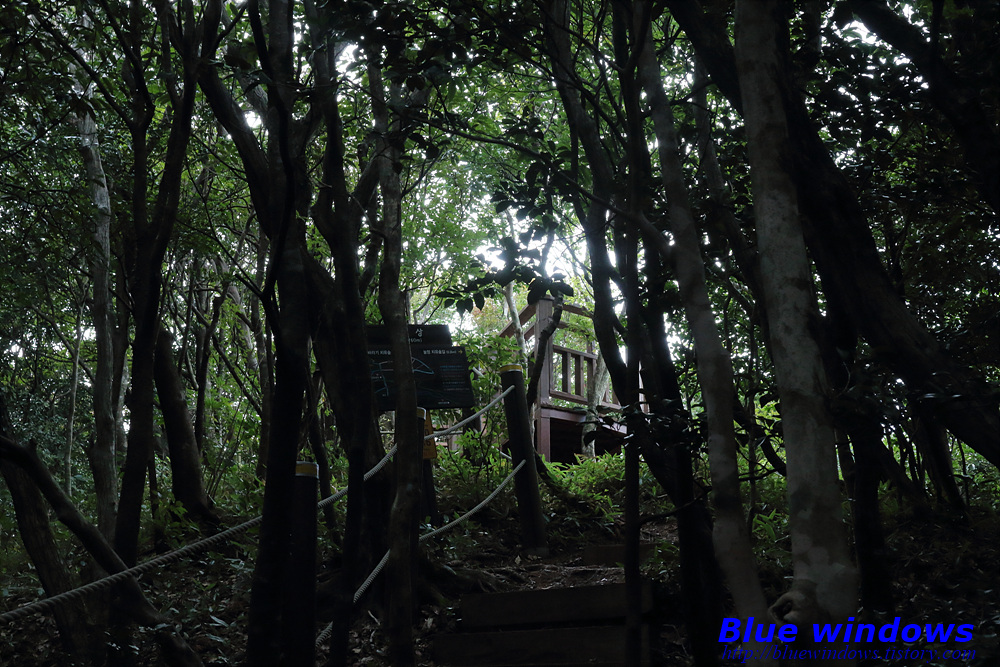 정상에 오르면 해안가 쪽은 보이지 않고 멀리 한라산이 눈에 들어 옮니다.