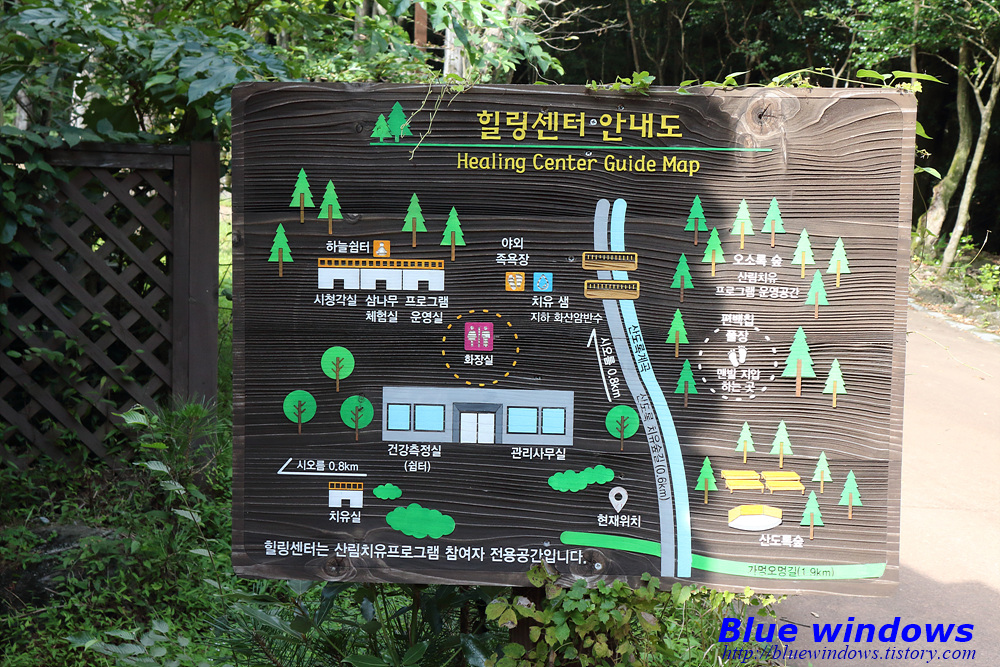 힐링센터까지는 경사가 조금 있지만 등산초급코스 정도로 그리 힘들지는 않습니다.