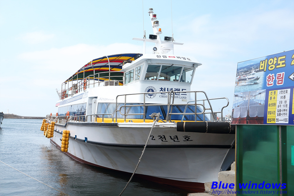 비양도 가는 배는 비양도호와 천년랜드호가 있는데 표가 다르기 때문에 들어갈 때 탄 배를 타고 나와야 합니다.