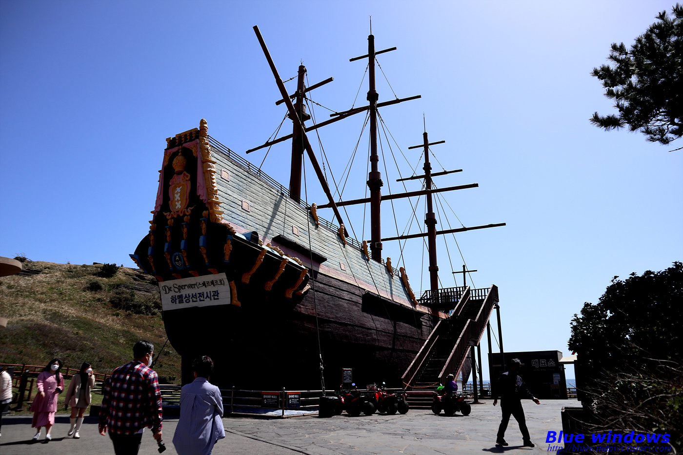 이 삼방랜드를 지나 용머리 해안쪽으로 더 들어가면 한국을 서양에 알린 하멜이 타고온 배의 모습이 전시되어 있습니다.