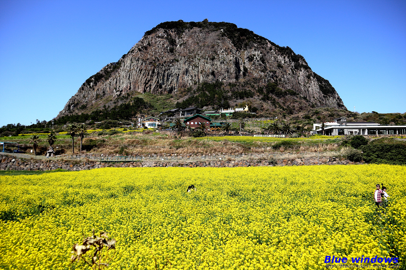 3월의 산방산에는 유채꽃이 활짝피어 일년중 가장 아름다운 모습을 보여 줍니다.