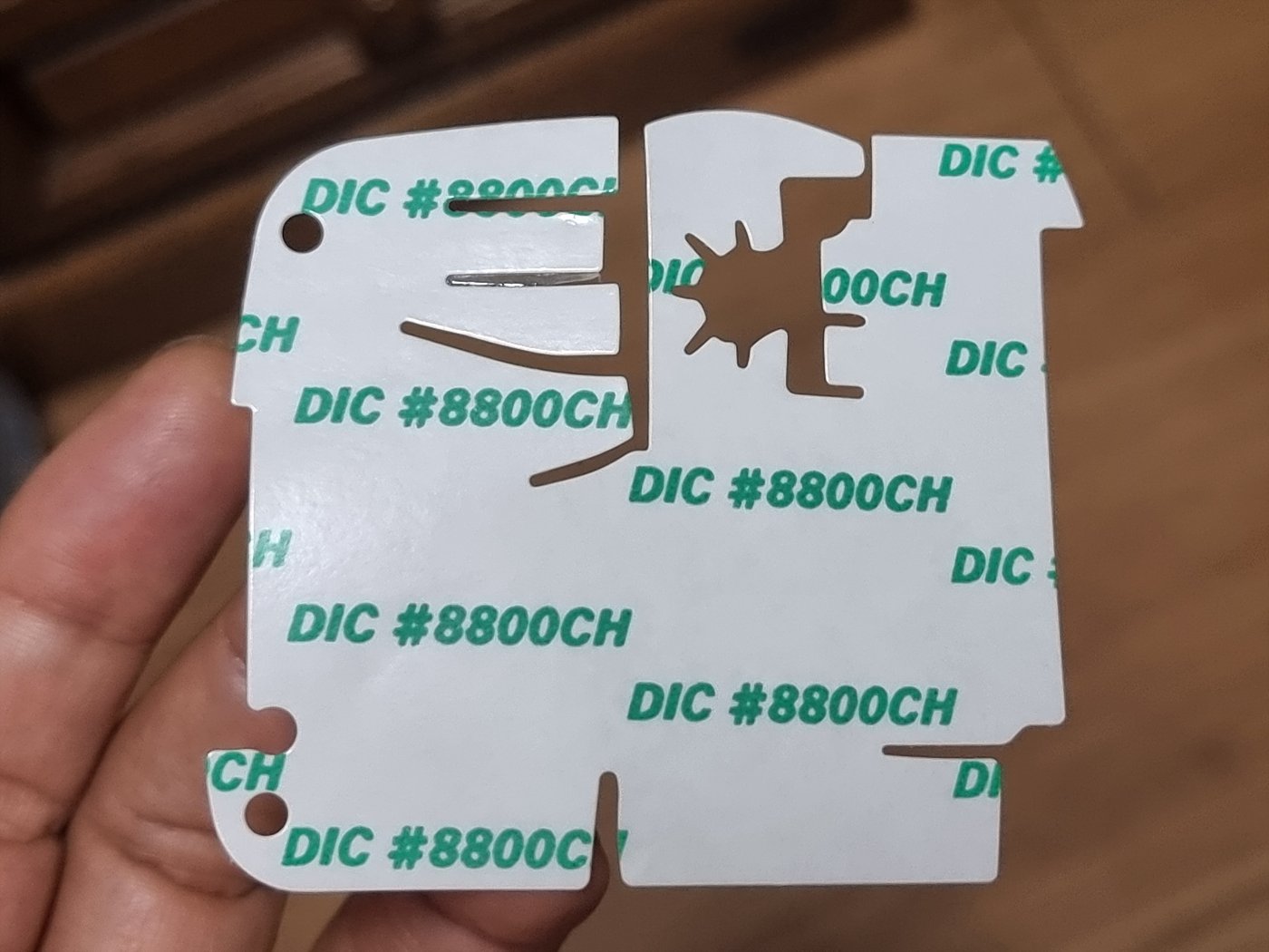 먼저 접착테이프를 모양대로 떼어냅니다.