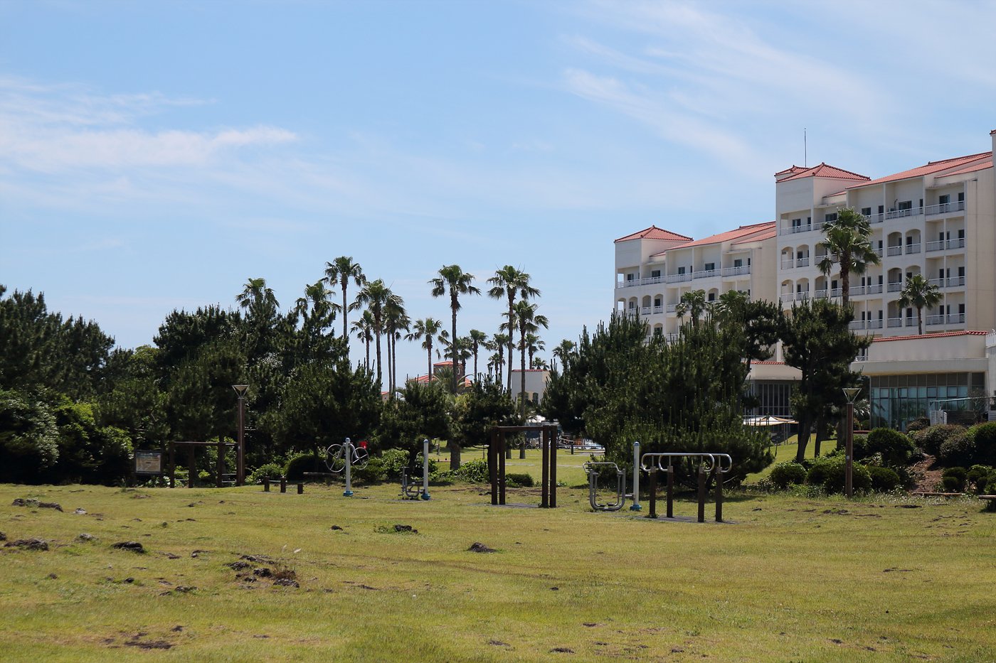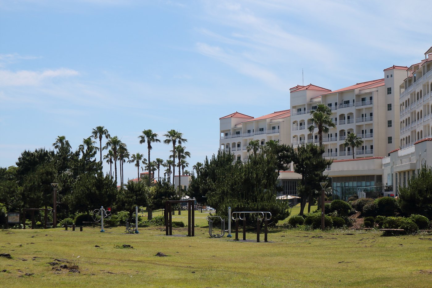 리조트 앞 정원에서 바라다 보는 제주 바다의 모습입니다.